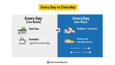 Grammar3 Min Read Ernest HemingwayonNovember 17, 2025 Every Day or Everyday: A Complete Usage Guide for 2026 Do you ever pause before writing every day or everyday? You are not alone—many people struggle to choose the right one. The confusion comes…